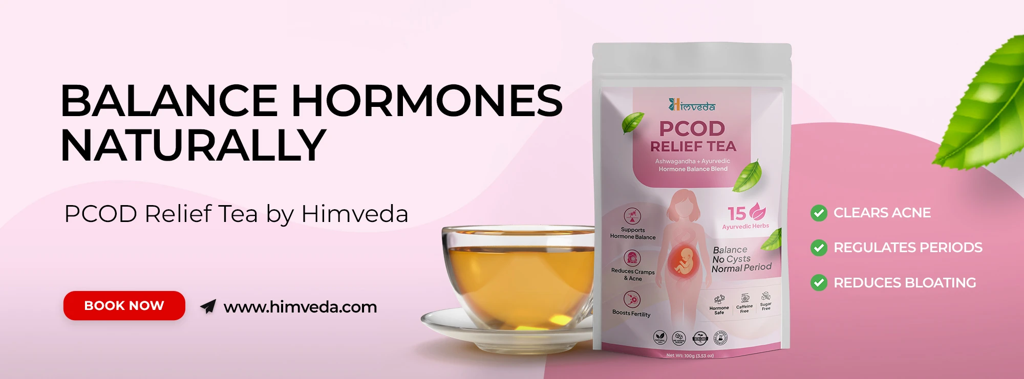 Say goodbye to hormonal imbalance with himvida PCOS Relief Tea. A powerful Ayurvedic blend desi...