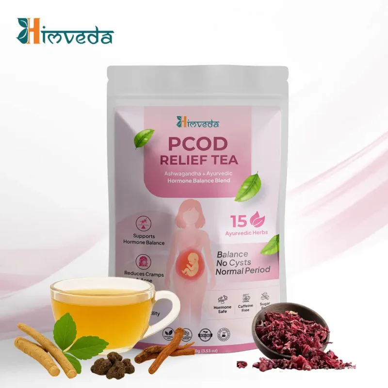 Say goodbye to hormonal imbalance with himvida PCOS Relief Tea. A powerful Ayurvedic blend desi...