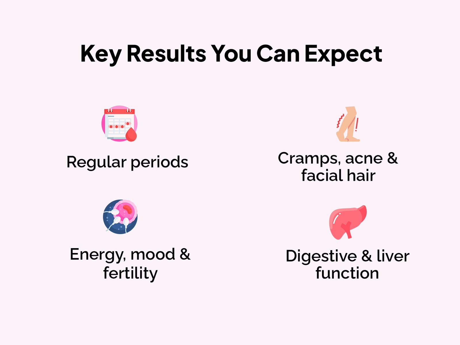 - Reduces PCOD-related Acne, Cramps & Bloating