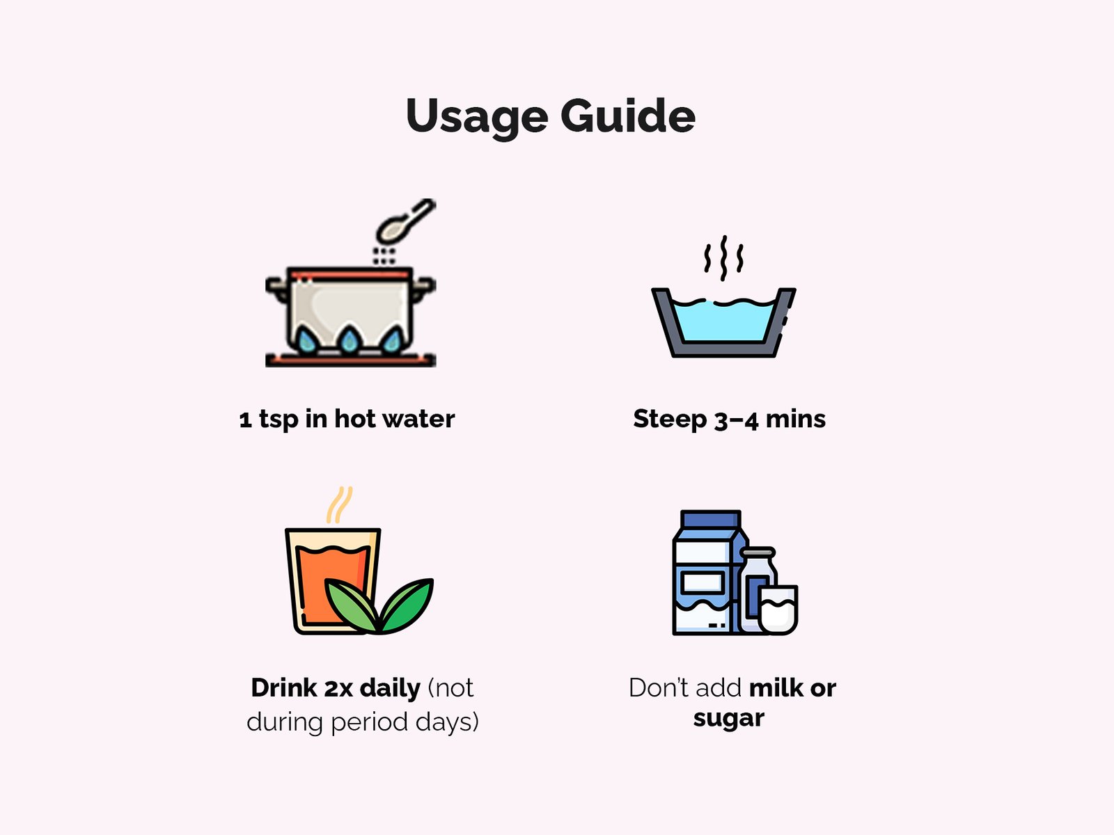 1 tsp (2g) per cup | Steep 3–4 mins in hot water